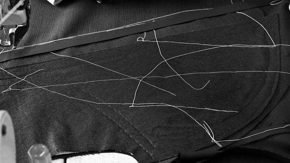 It takes 345 minutes of work to make a Tailored Suit jacket, twice that of a standard style. The refined fabrics, the canvas on the inside, the 130 hand-sewn stitches on the armhole, and the careful pressing make it unique for the natural way in which it moulds to the many different female physiques.